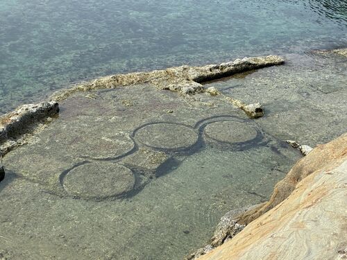 温泉津の最後は、櫛島のキャンプ場へ。駐車場に車を停め、坂を下るとキャンプ場だ。ここには、かつての石切り場が、海底遺跡のように残っているという。 温泉津のリアス式海岸 キャンプ場の敷地を進んでいくと、櫛島が見える。 承久の変で隠岐の島へ島流しに…