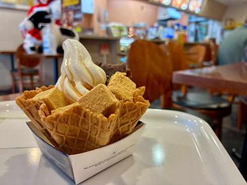 川崎大師の定番甘味(スイーツ)といえば、くず餅!後厄も最終月が迫るに至り、今さら厄除けの寺にゆく私。 参拝後のお楽しみにうってつけ!くず餅でとっておきのパフェ(実際はサンデーだよ)があると聞き、早速食べに行ってみたよー! いざ門前スイーツ♪ …